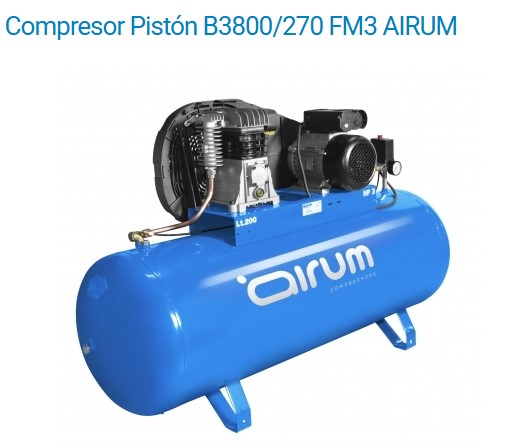 Encuentra aquí el Compresor monofásico 3HP. Este modelo marca airum tiene una potencia de 2,2 KW 3 HP, voltaje 230/50, posee una presión de 10 bar, una aspiración de 395 l/m y tiene una capacidad 270 litros.